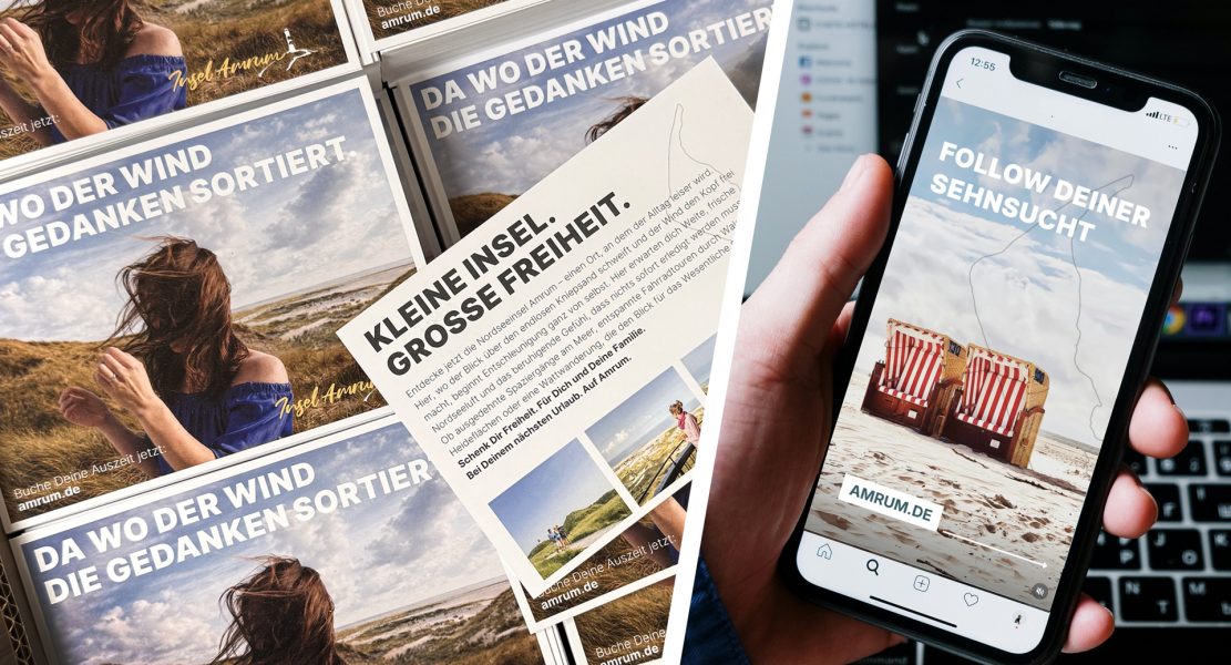 Ein Traum wird wahr. Wir durften für die Insel Amrum eine Kampagne entwickeln, die in verschiedenen Medien zum Einsatz kommt. Dazu zählen unter anderem eine Promo-Aktion in Coworking-Spaces in Hamburg, ein Social-Media-Push für die Urlaubsinsel sowie Postkarten, Anzeigen und Plakate. Mit dem Slogan „Da, wo der Wind die Gedanken sortiert“ greifen wir genau das emotionale Bedürfnis auf, die Weite und Freiheit der Insel zu erleben – um den Kopf frei zu bekommen und dem oft stressigen Alltag zu entfliehen. Wir freuen uns auf weitere gemeinsame Maßnahmen und darauf, unser touristisches Portfolio neben der Ostsee nun auch an der Nordsee erweitern zu dürfen.